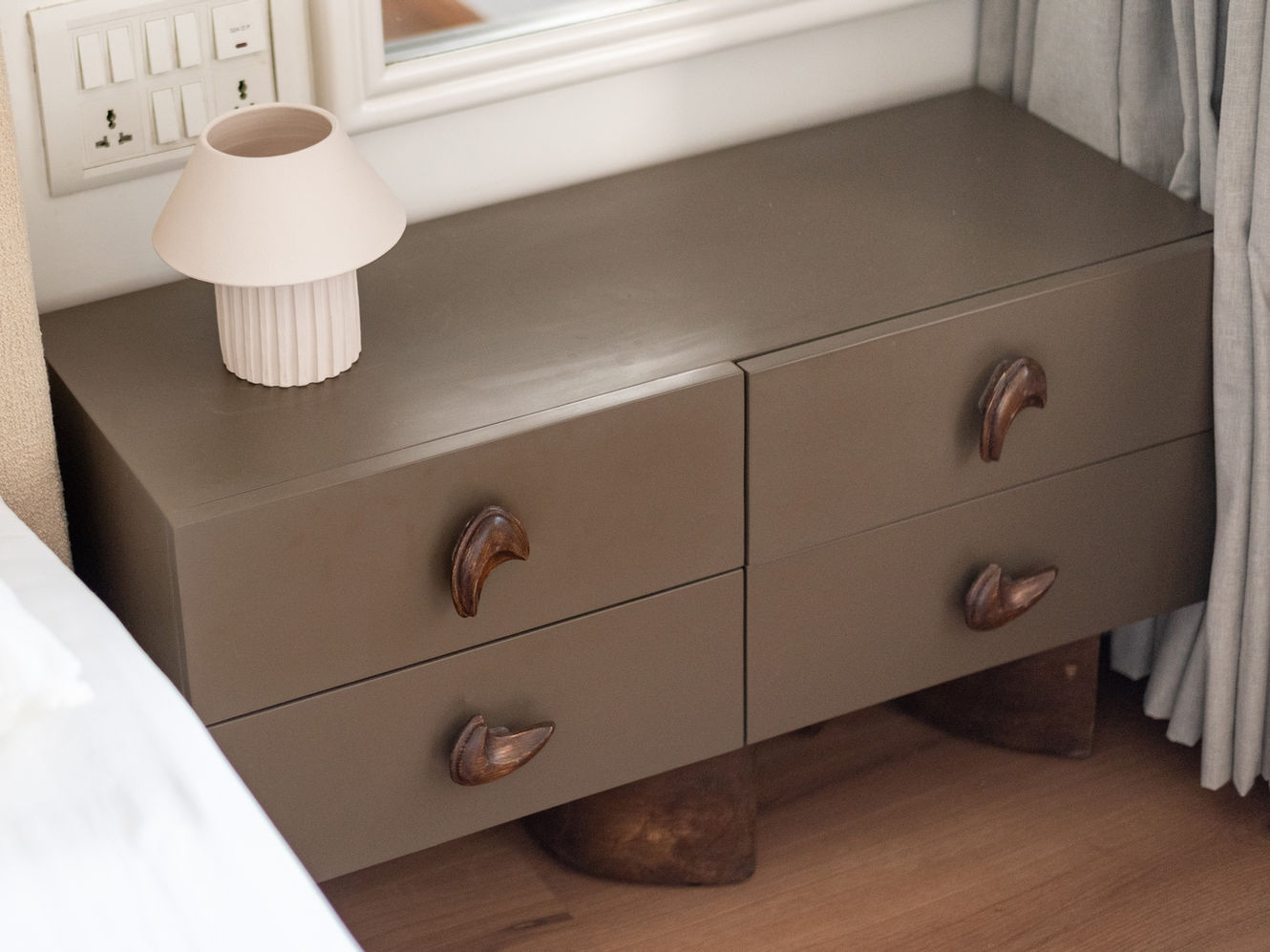 Legs & handles : Solid wood polished with matte melamine finish